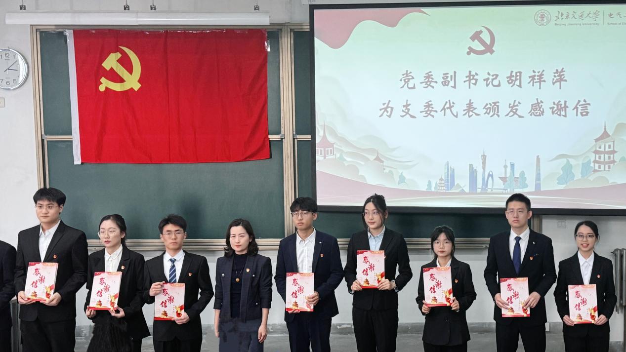 胡祥萍为支委代表颁发了感谢信,肯定了他们在支部建设、党员培养等方面的付出。