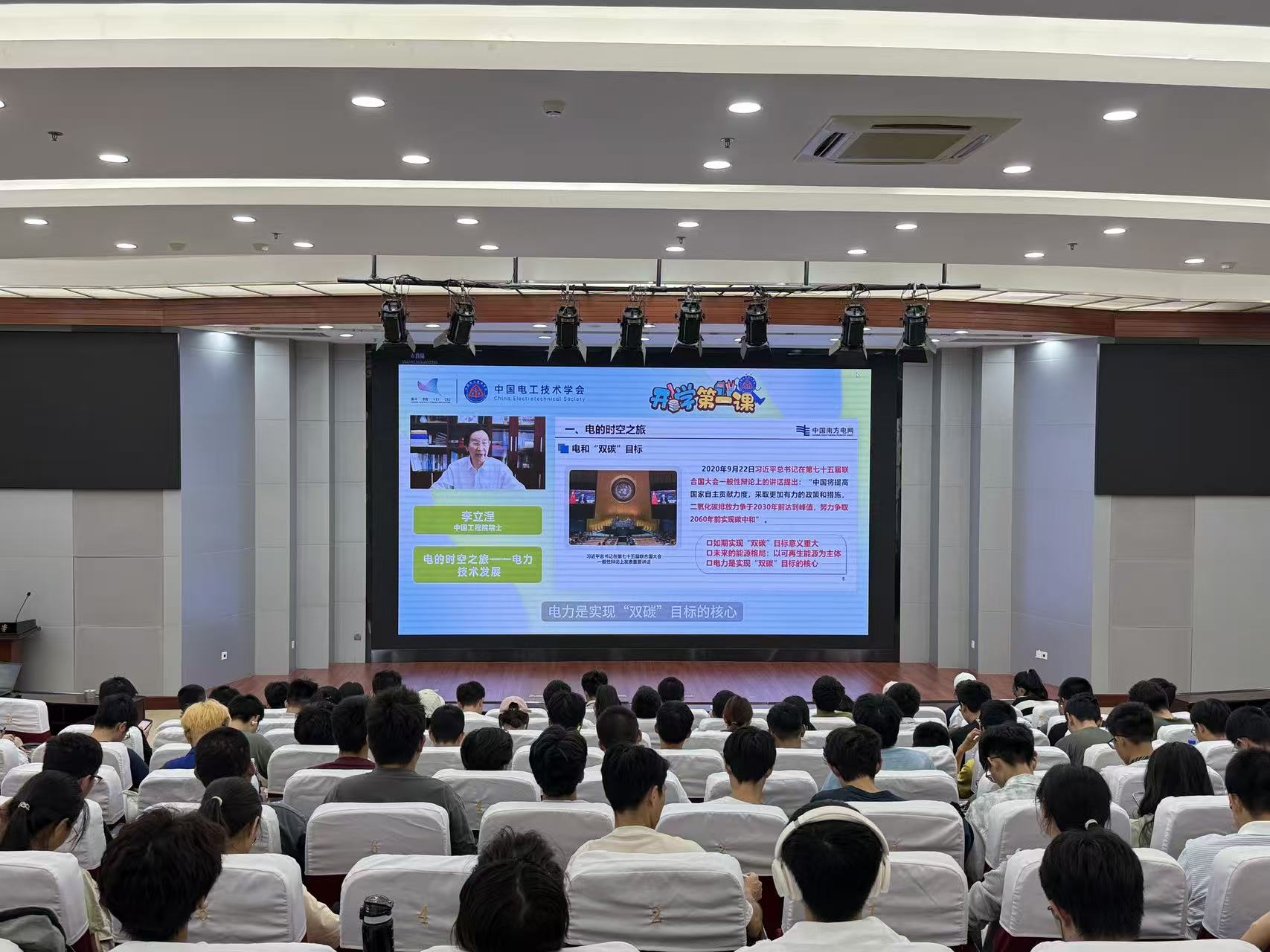 为加强专业认同教育,引导新生认知专业、了解专业,发现电气之美、体验电气荣光、畅想电气未来,9月20日下午,565net必赢官方网组织学院2025级全体本科新生和部分大类专业新生在机械楼二层报告厅集中观看中国电工技术学会举办的“开学第一课”线上公益科普活动。
